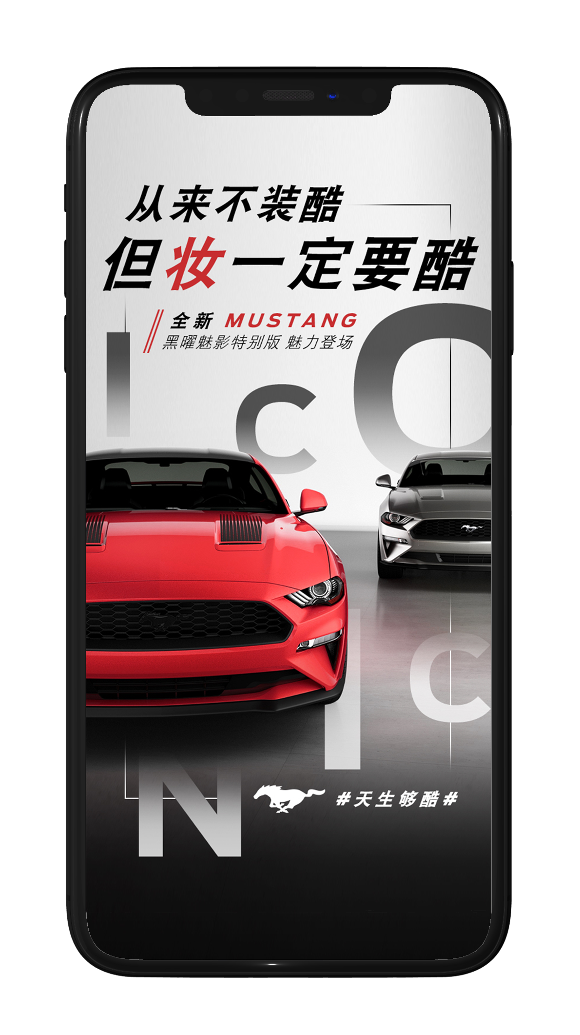 Ford launched Mustang 2019 version through both online communications and offline activities including website promotion, WeChat AD, “Mustang Day” test drive events, social posters, etc. (Team Work)